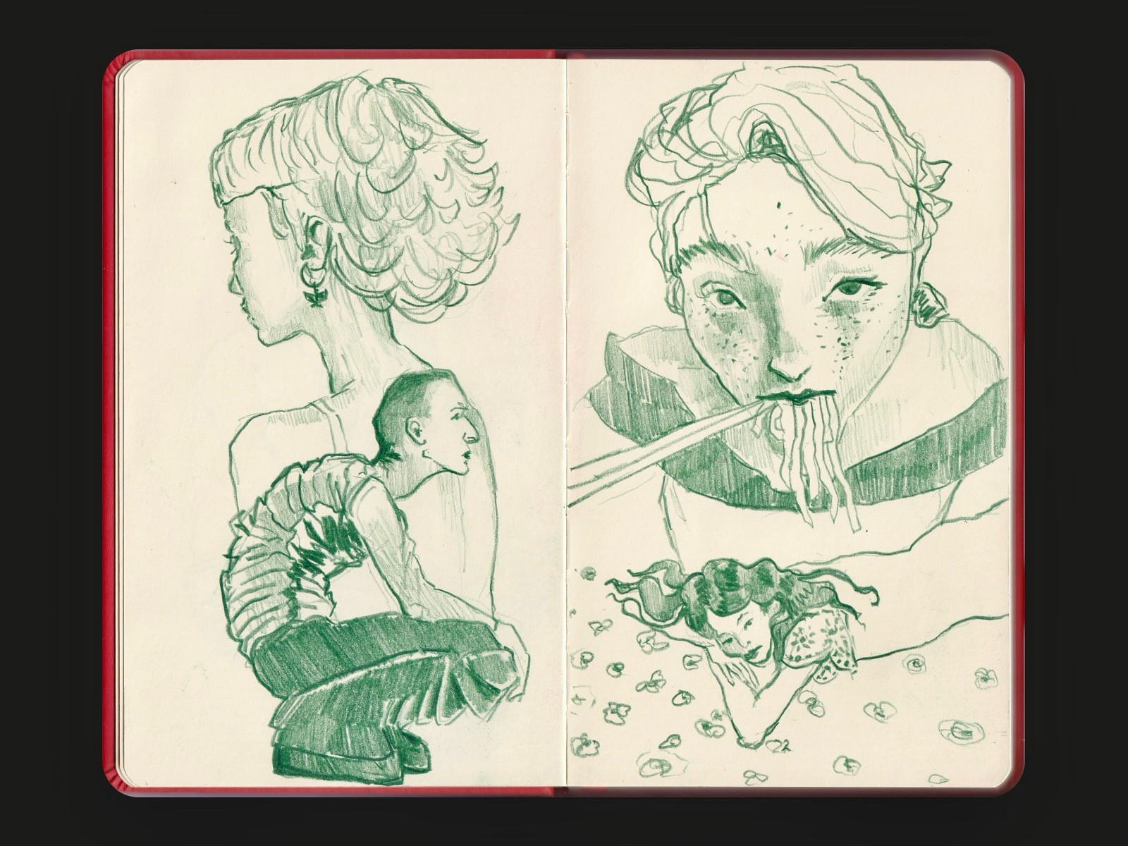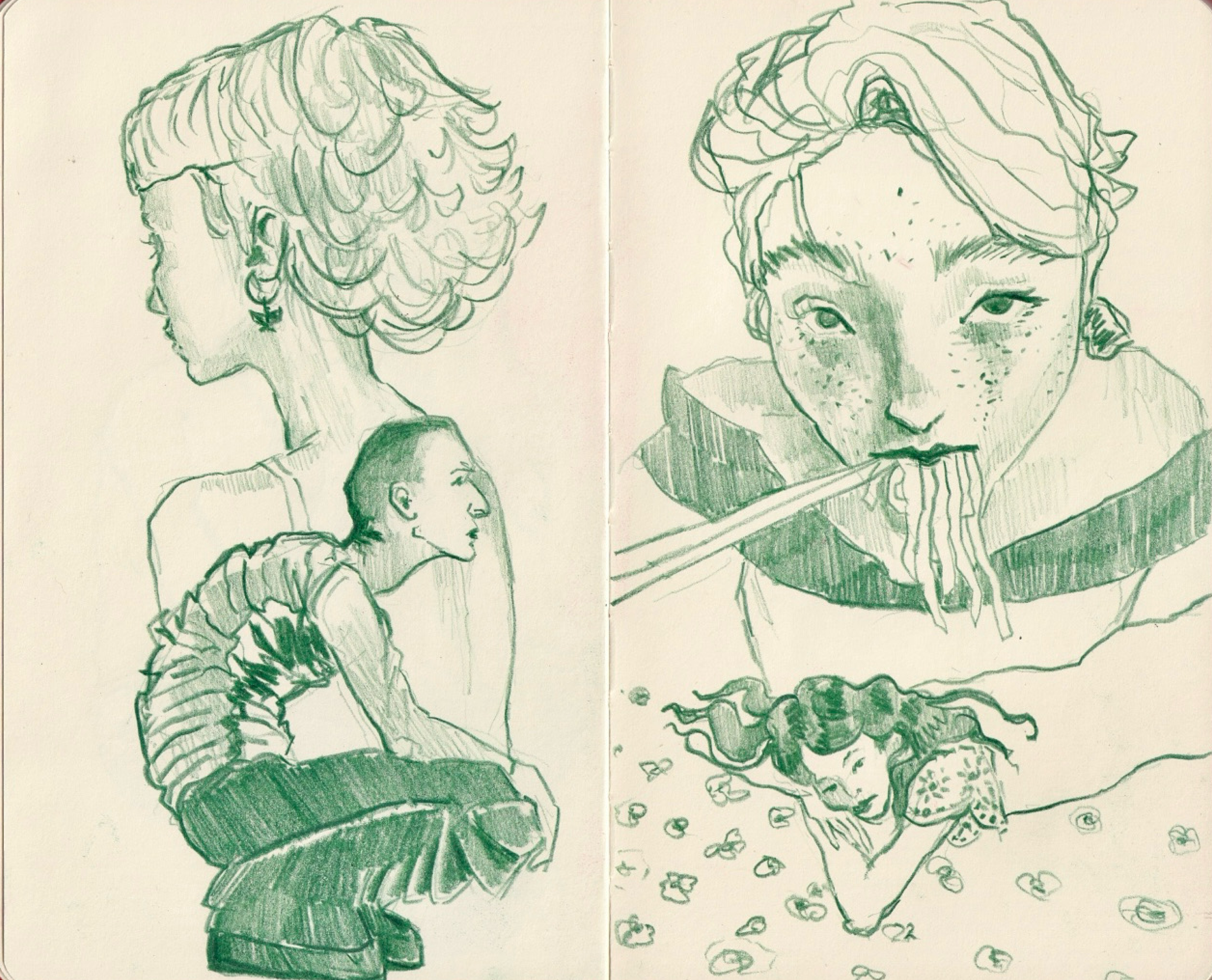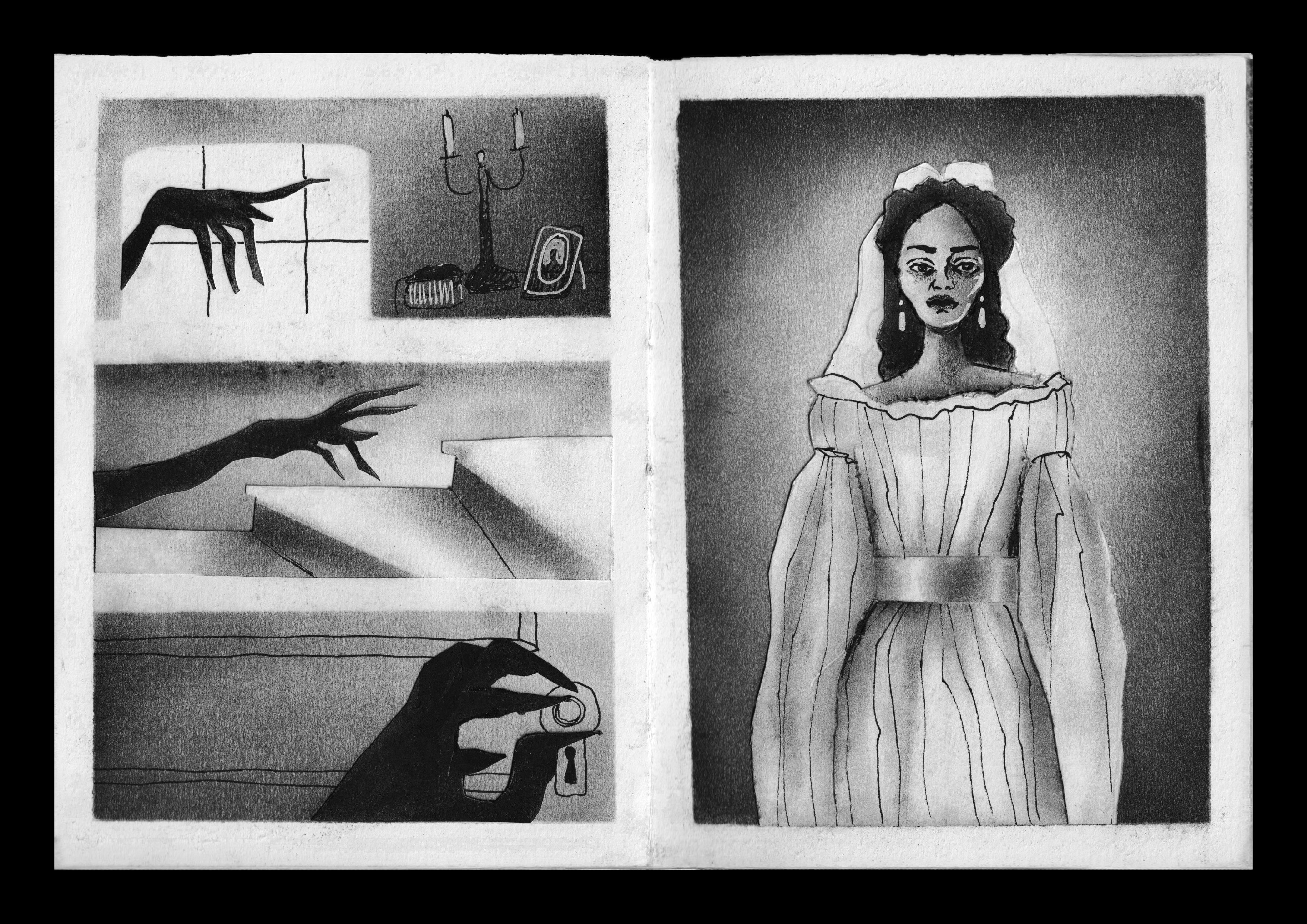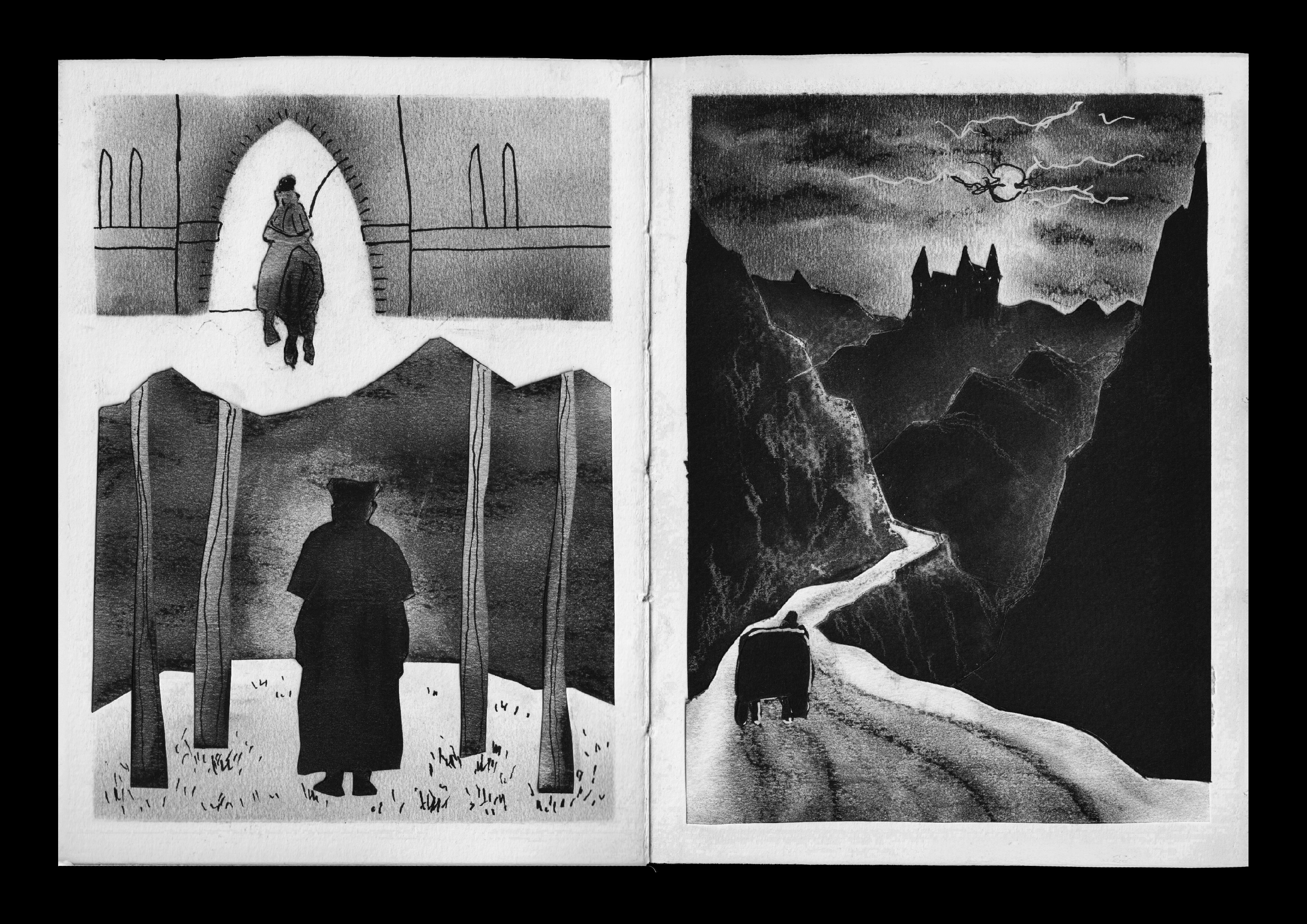 Zine on Robert Eggers’ Nosferatu, dry pastel and liner
